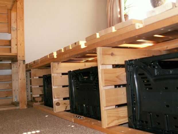 4) utilicé los estantes de repuestos para hacer la plataforma.