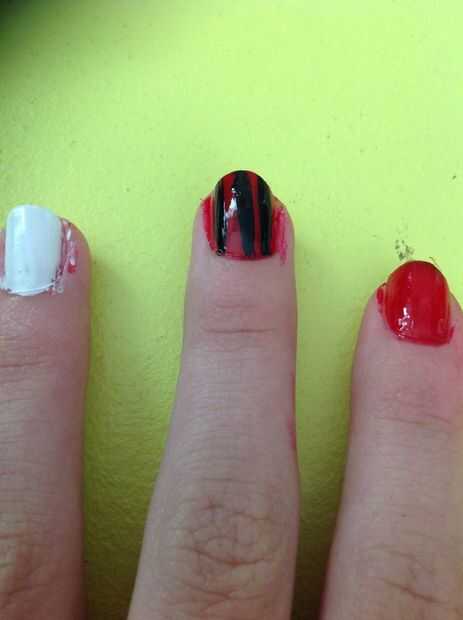 Para mi dedo medio, hice tres rayas verticales, aún usando negro.