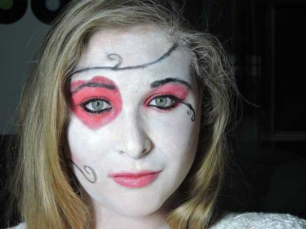 Reina Roja de Alicia en el país de las maravillas película Halloween disfraces y maquillaje tutorial.Paso 1: camisa. Pinté mi falda negra con pinturas acrílicas y añadí perlas y perlas con pegamento caliente.Paso 2: accesorios Coronas son 3D impresos