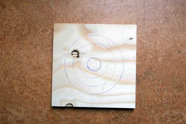 Tornillo de la hoja de lata en la madera con un tornillo en cada esquina. Ahora gire la madera boca abajo una endecha en una pieza de madera de desecho.