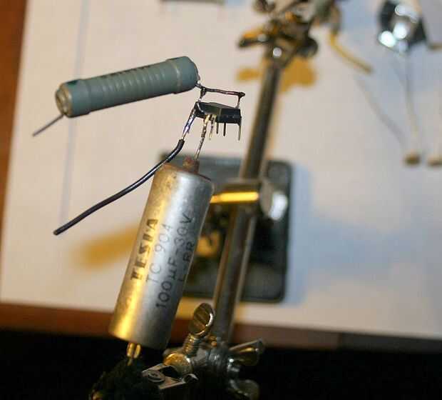 -Pin 6: este pin ya está conectado al pin 2. De este pin o pin 2 soldar un cable del condensador de 0,47 uF.