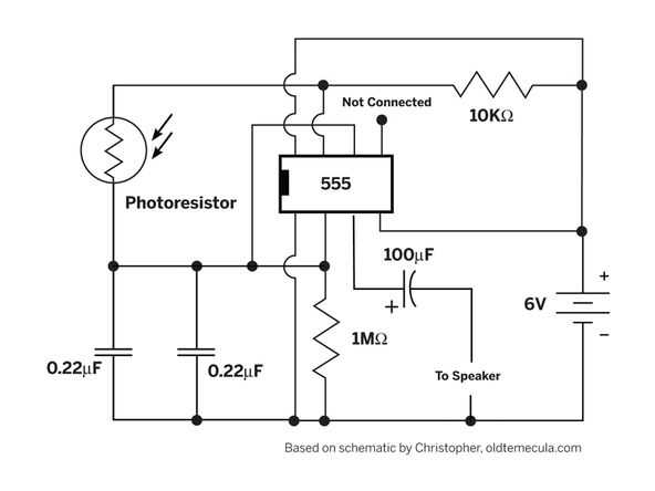 Pin 1 va al suelo y también uno de los extremos de la resistencia de 1M Ohm, uno de los extremos del capacitor de 0,47 uF y un cable del altavoz.