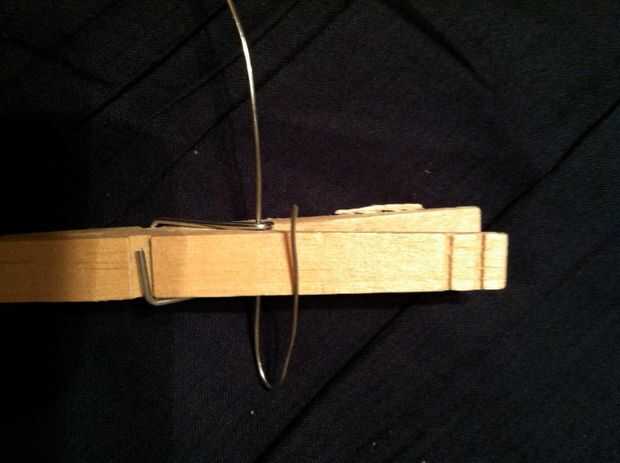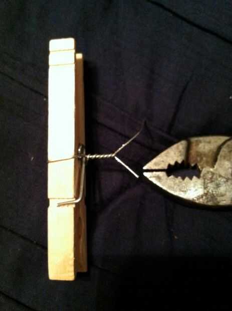 Enrosque un extremo del alambre a través del orificio en primavera y doblar en "U". El alambre debe asegurar ambas piezas de madera y los extremos deben ser atados, por lo que la foto 2 muestra el patrón de la envoltura.