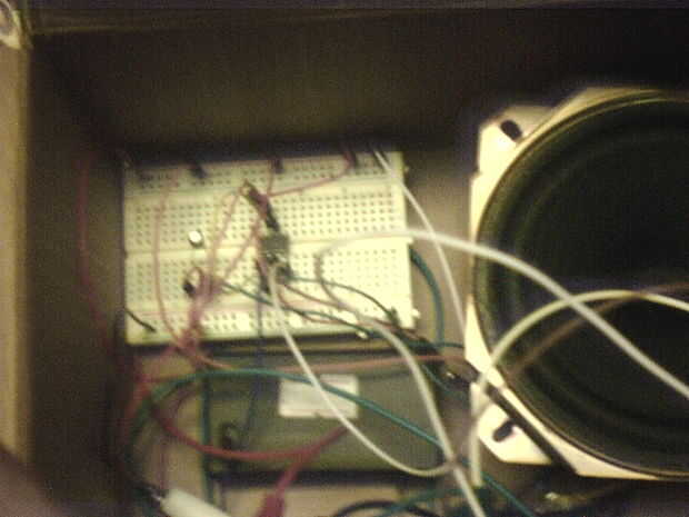 Me ha gustado su circuito hasta el punto que he decidido destrozarlo y hacerlo interactivo y aún más molesto. Es fácil a la deuda, seguir su esquema en el video para hacer mi primera en un tablero de pan. Luego se aburrió con él y quería añadir algunos interactividad. Poco convirtió en una única consola punk 555 atari. Sugiero lo montan 3 altavoces para el mejor efecto. Pero mi caja sólo podría encajar uno.