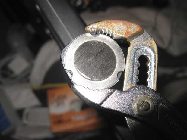 Separar el botón de la Asamblea de espejo girando con pinzas alrededor de 60°.