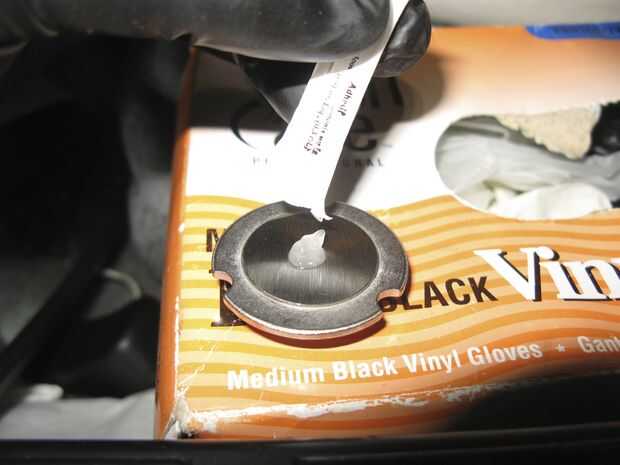 Aplique solo una gota (que no te dan más de lo que de todos modos) del adhesivo a la superficie preparada. Se extenderá hacia fuera cuando usted presiona el botón contra el vidrio, por lo que no se preocupe de distribuirla.