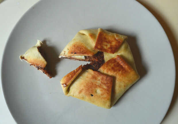 El primer bocado pegajosay caliente, pero tenía un grano de cereal distintivo a él. La textura me recordó a masticar en una barra de granola caliente Blondie, pero más suave. La Nutella ha añadido la cantidad perfecta de dulzor y no demasiado desordenado porque la tortilla siempre todo en su lugar. Me ha sorprendido al gusto una pizca de sabor afrutado de los macarons y pasas de uva.