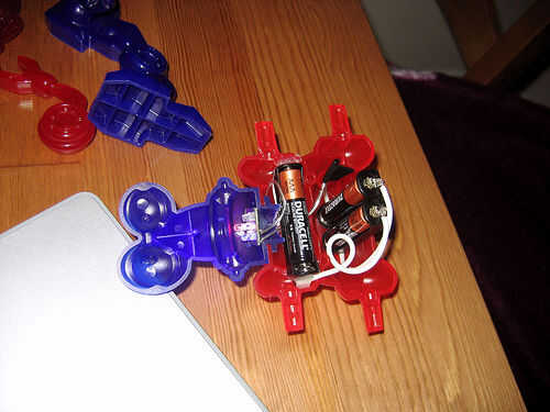 Una vez que se colocan junto con un positivo y un cable negativo puede pegar en el cuerpo del robot.