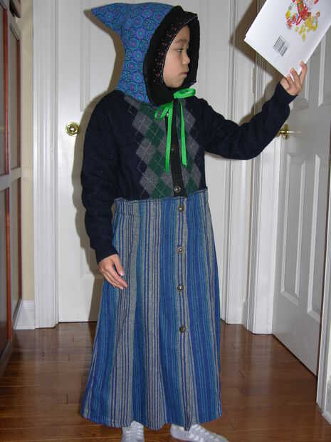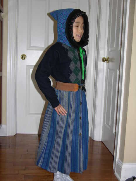 Dejar que la persona suerte intentar encendido la capa. Mi pieza se veía bien me salvo algo falta en la cintura. Originalmente planeé un cosido en el lazo de la cintura, entonces recuerdo que ella tiene un cinturón de vestido que debe ir bien con esta capa. Y así fue.