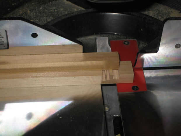 Nota: Al cortar las piezas, me pareció mejor utilizar un trozo de madera debajo de la pieza a cortar para actuar como soporte. Haciendo esto, las piezas pequeñas cortadas eran menos propensas a enredarse en la hoja de sierra y enviaron volando. Por supuesto, use su protección de los ojos cuando se cortan estas piezas. La madera se puede lanzar a velocidades altas de la sierra.