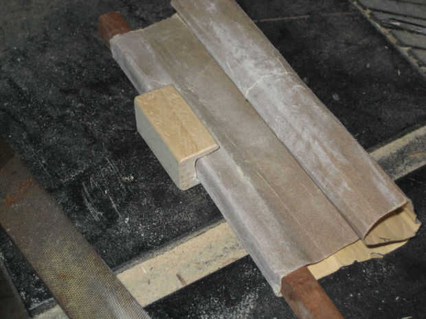 Una vez que la ranura esté lista, debe quitar todos los bordes de la pieza. Esto puede hacerse con papel de lija o un archivo suave. Asegúrese de que usted también obtener bordes alrededor de la ranura. Las esquinas en la parte inferior de las piezas deben ser lijadas a una curva, como se ve en la imagen de abajo.