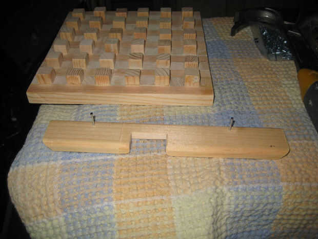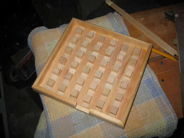 Una vez construido el tablero, debe añadirse un borde para mantener las piezas en el tablero. Puede utilizarse cualquier cosa alrededor de una pulgada ancha y no demasiado profunda. Número de cada lado del tablero. Medir cada lado y cortar el las piezas de borde con una juntas de 45 grados para conectarlos bien juntos. Asegúrese de que numerar las piezas de la frontera para que coincida con cada lado del tablero ya que cada lado será ligeramente diferente. La Junta no será perfectamente cuadrada y cada lado de la frontera debe ser medido y cortado por separado.