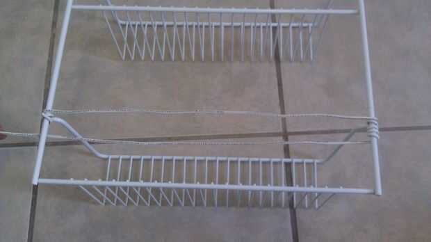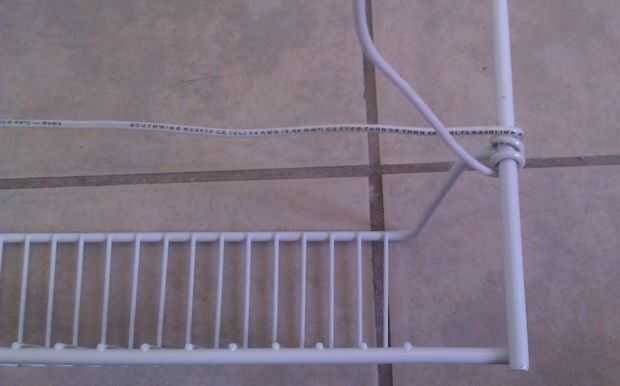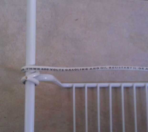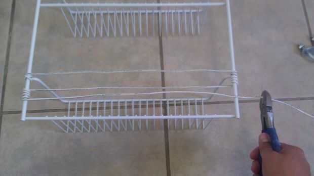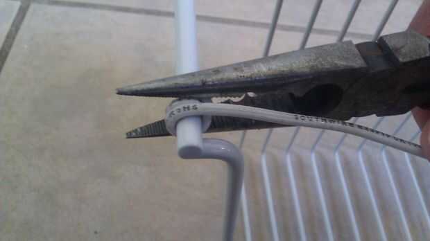 El cable flexible alrededor de la parte posterior de la parrilla de cadena para que no caigan sus cosas de ducha. El cable que tengo era bastante rígido y quedó sin embargo doblada, así que este paso fue bastante fácil. Ver las fotos.