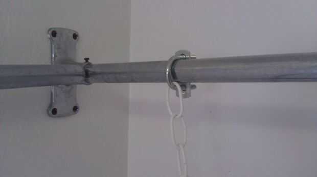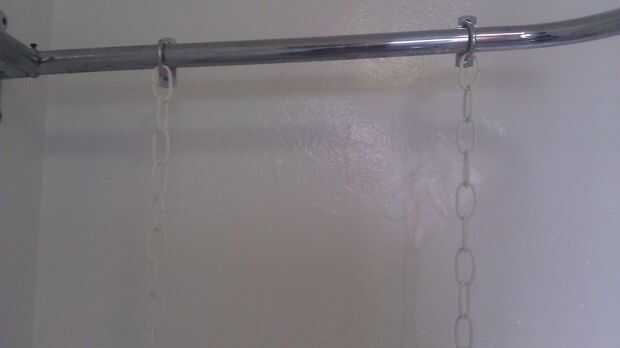 Mi barra de ducha forma un rectángulo completo y está anclada firmemente a la pared y techo. Os adjunto las dos cadenas a la barra que se encuentra frente a la regadera. Si usted quisiera, podría realmente colocarlo en cualquier lugar, como por ejemplo en la esquina. Asegúrese de colocar las cadenas de la misma anchura aparte como el canastilla/rack que mantendrá tus cosas de ducha.