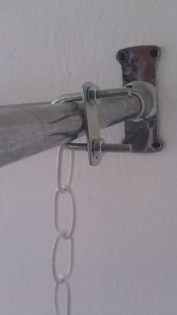 Utilice las dos abrazaderas en U para sujetar cada extremo de la cadena a la barra de cortina.