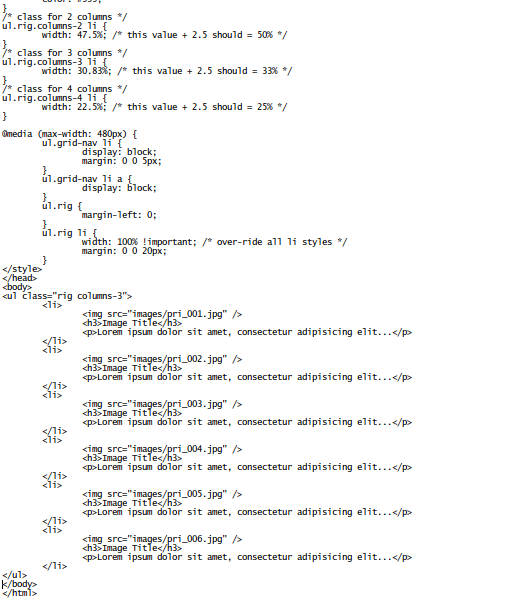 Ahora es el momento para realmente Mostrar la galería en la Página Web. Para ello, pegue el siguiente código entre las etiquetas en el documento de página web HTML. El código está disponible en [http://pastebin.com/nUhdXUat]. Ahora el General documento HTML se ve así: