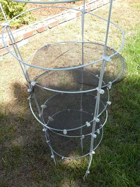 Cortar la pantalla para ajustar los anillos. Utilizando abrazaderas de plástico seguro la malla a las capas.