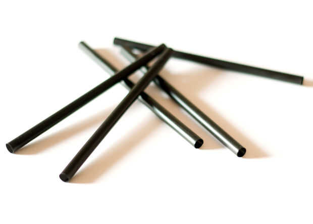 Cuando ha cortado un cierto número de pajas negro a una longitud de unos 2 cm menos que el snoot plástico (ya no es un recipiente de jabón), necesitas arreglar en la forma del snoot y pegarlos.