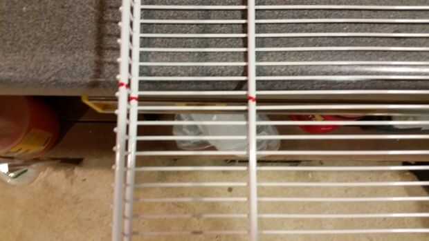 Yo entonces prueba de ajuste a la puerta para verificar espacios libres. Para mi aplicación el estante se instaló con el labio apuntando hacia abajo para acomodar un espacio entre el windosill y parrilla. Una vez que vuelva a la parrilla en la puerta. Luego use un marcador para determinar dónde perforar los orificios para las tuercas T ser instalado.