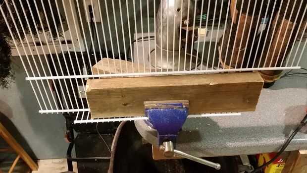 Después de cortar, ajustar el ajuste doblando el borde para cerrar la brecha entre el travesaño de la ventana y parrilla. Este paso toma un tiempo pero asegurará el mejor ajuste. Usé un tornillo de banco con algunos 2x4s y había doblado a un ángulo con mi cuerpo en una postura de press militar hasta que conseguí el ángulo deseado.