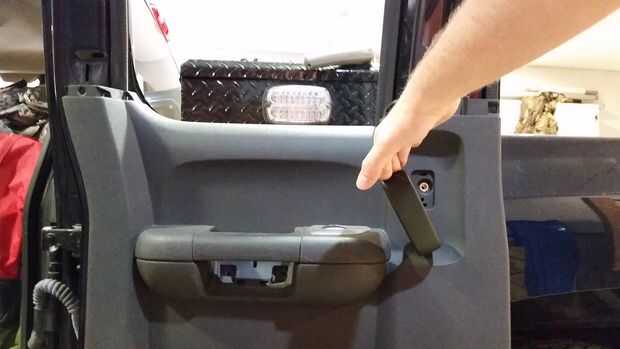 Este paso requiere sacar el panel de la puerta del vehículo para que las frentes las tuercas en T pueden instalarse por detrás para evitar cualquier desliz. Después de quitar los plásticos es necesarios taladrar los orificios marcados en el paso anterior. Tenga cuidado de no taladrar cualquier presillas que sujetan los plásticos a la puerta.