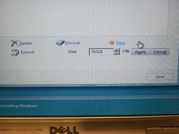Nota: Utilizando todo el espacio disponible es el predeterminado pero puede usarse cualquier valor deseado mientras se cumple el mínimo de 7340 megabytes.