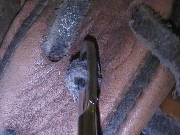 después construí un bate de béisbol de 8 pies, pensé que sería genial poner una insignia de Louisville Slugger en ella antes de que lo colgué en mi "Cueva de hombre".Para ello instructable, en primer lugar, usted necesita un palo largo 8 pies:2