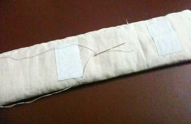 Utiliza pegamento para tela y pegar la pestaña Espinosa en los lugares marcados en la almohada de arroz.