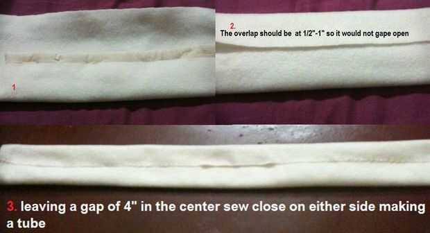 Cubierta cerca de su almohada y se traslapan aproximadamente 1" así no gape abierto. Mantener una abertura en el centro de 4" y cosa la costura cerca forma un tubo.