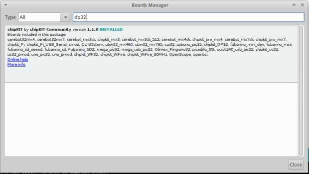 Ahora tenemos que instalar la herramienta adicional para dp32 en el IDE de Arduino. Vaya a herramientas -> Tabla -> Administrador de directorio y buscar dp32. Podemos filtrar mediante dp32 e instalar esa herramienta para hacer el trabajo de la Junta de dp32 utilizando el IDE de Arduino