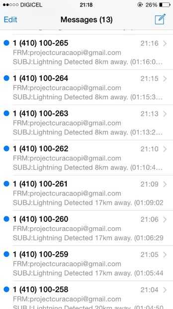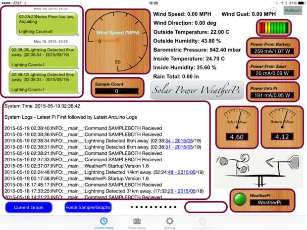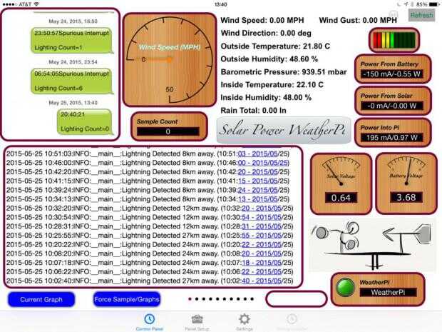Hemos estado funcionando el AS3935 breakout Junta en la torre de WeatherPi durante los últimos 5 días. Hemos tenido dos tormentas vienen a través de la época. La primera tormenta era bonita semana y acaba de mudarse a través del norte de SwitchDoc Labs. Nuestro Presidente, Laurel, fue a jugar golf (los beneficios del poder y la posición) y ella nos llamó para decirnos que había llegado la tormenta de relámpago por, y llegamos a decirle que ya conocíamos. A continuación se muestran los registros de rayos desde nuestro panel de control RasPiConnect. Nota que no había ningún viento medido durante ya que los Sensores de WeatherRack tiempo desconectado ya que fue enchufado en Proyecto Curacao (y levante con el viento), que se dirige poco a las zonas tropicales.