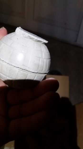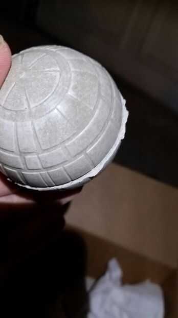 El último paso será limpiar cualquier exceso de hormigón que se han formado en Ecuador de la estrella de la muerte o en la base. Este paso es para que sea seguro para cualquier curioso paso Jedi/rebelde que podría estarse preguntando si es una luna o no, además es su escultura más visualmente atractivo. Golpee suavemente en el hormigón que sobresale, es decir, en la esfera en lugar del lado del exceso de cemento. Esto asegura que no golpeó lo que no necesita.
