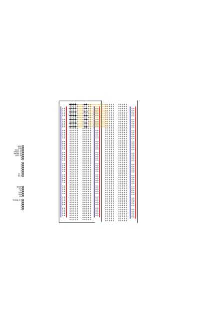 Con la foto presentada y negro sobre los círculos representa las patas positivas de cada LED va a través del canal con 42 LED. Las líneas naranja representan los puentes entre cada canal. Al final de los puentes a la derecha usted necesitará ejecutar puentes a la placa Arduino sí mismo. Se colocarán los puentes que coinciden con las patas positivas en entradas digitales 0, 8, 9, 10, 11, 12 y 13. Los puentes que coinciden con las patas negativas se colocarán en las entradas 1, 2, 3, 4, 5, 6 y 7.