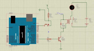 En este circuito negativo de la lámpara está conectado con relé NO y NC está conectado con el lado de negitive la batería y el otro extremo de la lámpara positivo está conectado con la batería del lado positivo, cuando se pulsa el interruptor de relé de obtener energía y llevar cambio de posición de NC a NO, luego se encienda la lámpara de