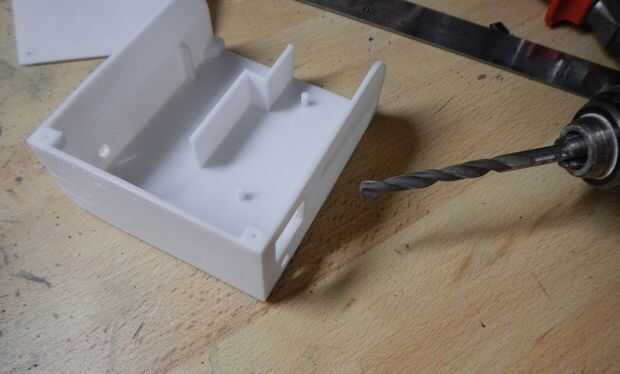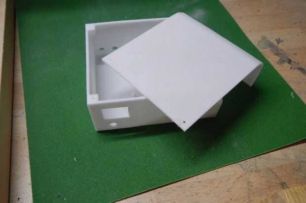 Hice una caja con sketchup y 3d imprimir. Si usted tiene acceso a una impresora 3d, descargar el archivo stl e imprimirlo (relleno de 20% y 0, 3 capas). Lijar la caja y los agujeros limpios. Si no, puede hacer una caja de un Tupperware o cualquier caja de plástico.