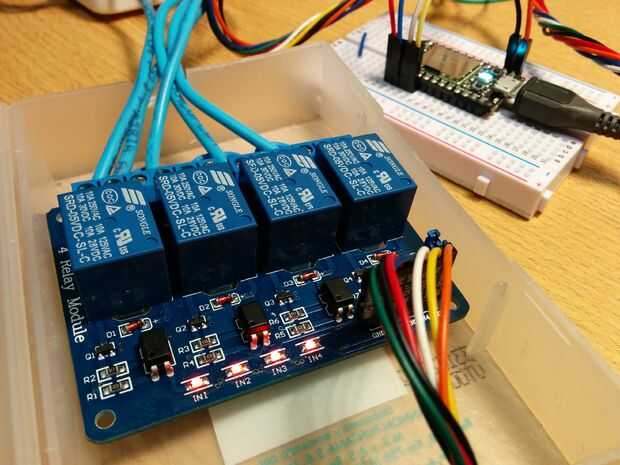 Este proyecto surgió de una de las primeras cosas que viene a la mente cuando pensamos en IoT: girar la máquina de café cuando vamos a trabajar por lo que tiene el café cuando llegamos. Lo que hice fue pensar en la posibilidad de controlar cuatro tomas de corriente independientemente con base de chispa y aplicación web simple (programada en HTML y un poco de PHP) este es el primer prototipo funcional :)