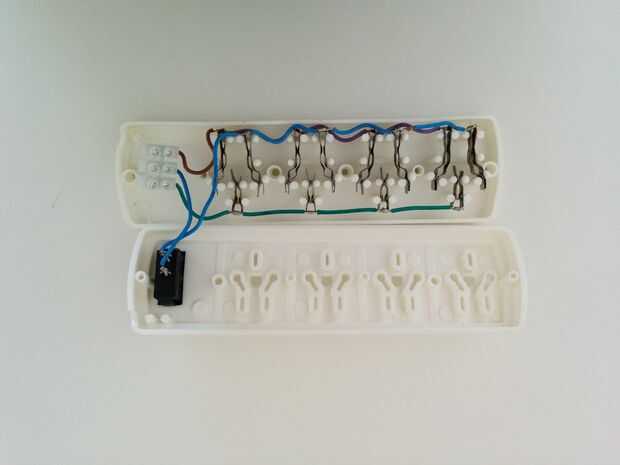 Nota importante: en esta corriente el cable que corresponde a la fase es la de azul claro. Esto es incorrecto y peligroso: el azul claro representa siempre cables de neutro. He ignorado este color en mi cableado y utiliza la luz azul de la fase.