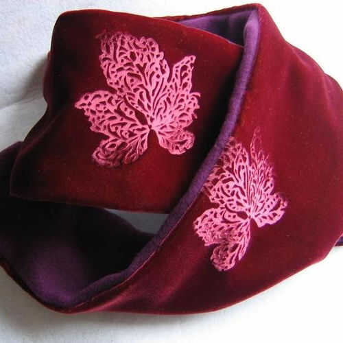 Cuidado el terciopelo resultante: limpieza en seco. Como con la mayoría de terciopelos, la tela puede desarrollar manchas brillantes si punto tratados o frotado excesivamente. Lavado/remojo el terciopelo terciopelo (áreas brillantes y oscuras) podría resultar en una apariencia desigual y podría aflojar las fibras prensadas de las imágenes, haciendo aparecer fantasmal y borrosa.