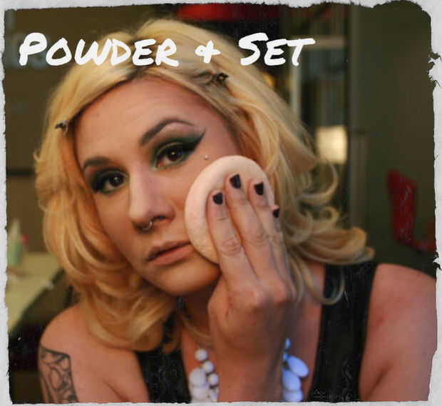 Polvo de la cara para definir su contorno e iluminación. Me gusta usar un polvo traslúcido como en polvo sin Color de RCMA, Ben Nye Neutral Set, o un polvo suelto de HD para un súper mate acabado. Para evitar molestar a su punto culminante y el contorno, sacuda un poco de polvo suelto en un soplo de polvo y suavemente pero rápidamente la palmadita en la cara. Dato curioso: esta técnica es el origen del término "beat que enfrentan".
