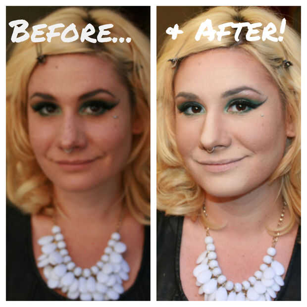 Eres puso de relieve y contorno! Esta es una manera mucho más rápida para resaltar y contorno que con cremas líquidos; sin embargo, se desvanecerá más rápido. Para obtener más poder de permanencia, esta capa sobre un contorno crema/líquido. Para mayor brillo, añadir un toque de sombra de ojos neutral con a su punto culminante en polvo antes de aplicar. Si usted está interesado en cómo obtener mi mirada del ojo de este tutorial, ¡ mira mi tutorial del día de San Patricio!