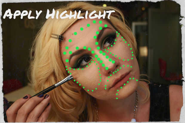 Comenzar mezclando su Fundación diaria (cobertura total líquidos o cremas son las mejores) con un poco de crema blanca o corrector. También me gusta añadir un poco de corrector amarillo para añadir brillo. También puede comprar una base varios tonos más claros que tu tono de piel. Aplicar el puente de su nariz; sus undereyes; tus mejillas barrer para arriba hacia la sien; su área de la frente por encima de las cejas; alrededor de la boca; y en la barbilla.