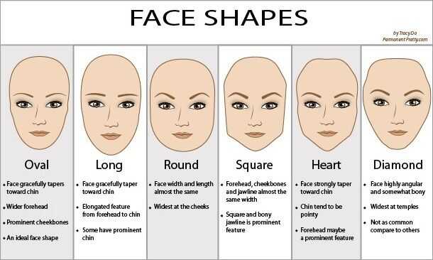 Hay seis formas de cara a considerar al determinar cuál es el tuyo: ovalado, largo, redondo, cuadrado, corazón y diamante. Mira la foto para ayudar a determinar qué forma de cara tienes.