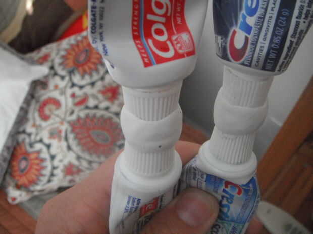 Durante los últimos años, he de vez en cuando transferí pasta de dientes de un tubo grande en un pequeño tubo para viajar en avión, en realidad, soy un minimalista y prefiero usar un tubo de viaje en casa que ocupa menos espacio en el tocador.