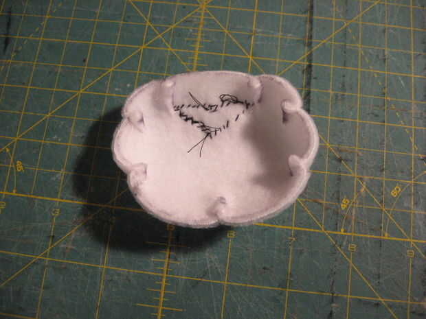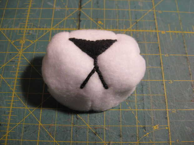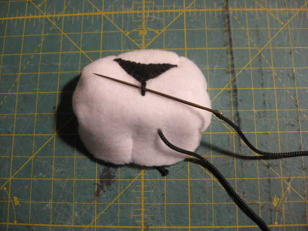 La boca se hizo con algunos cordones negro fino y se sutura en el lugar con una aguja más pesada.