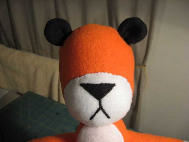 Recomiendo a mano cose la nariz y la boca en su lugar antes de colocar el bozal a la cabeza. Usé un simple Sobrecosa (gracias otra vez jessy) para sujetar la nariz a boca y boca a la cabeza, así como para colocar las bandas más tarde.