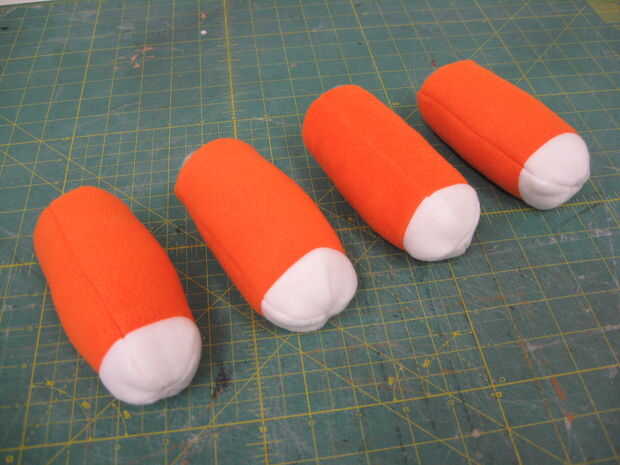 Coser los extremos blanco sobre cada pedazo de piernas y brazos como se muestra en las fotos.