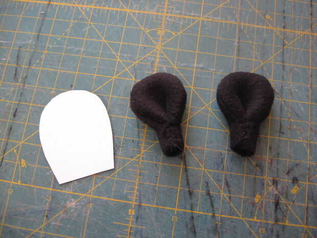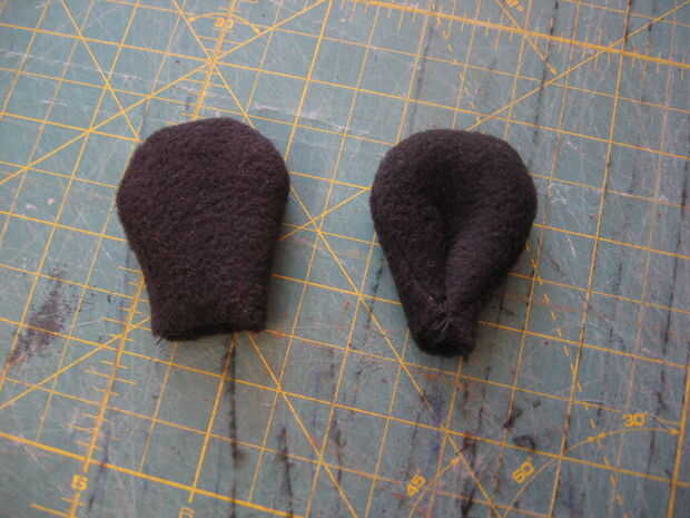 Para obtener una curva agradable a los oídos, doblar la parte inferior de la mitad de cada oreja por la mitad y colocar unos puntos de mano para sostenerlos en su lugar, como se muestra en las fotos.