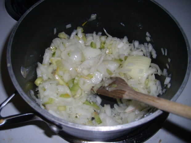 Saltear estos ingredientes con la primer 1/4 taza de aceite, hasta que las cebollas comiencen a quedado claro.