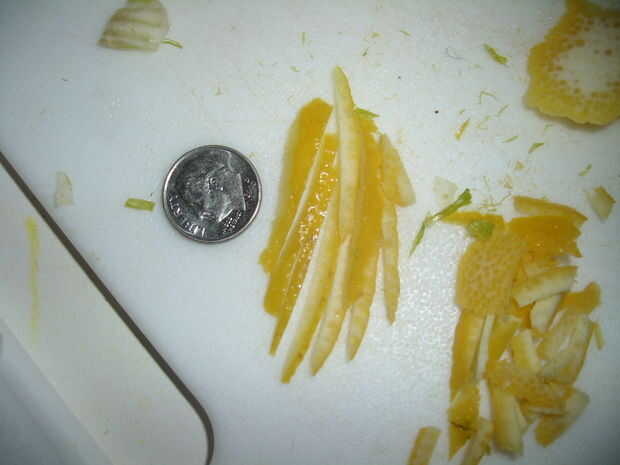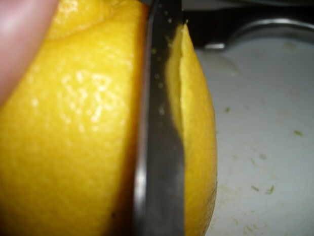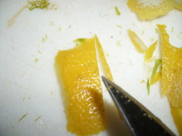 Si no tienes una zester, usted puede cuidadosamente Raspe una de las cáscaras de los limones y Juliana (demostrado)