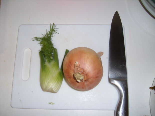 Dados la cebolla y el bulbo de hinojo, para obtener 1 cucharadita de ralladura de limón de uno de los limones.